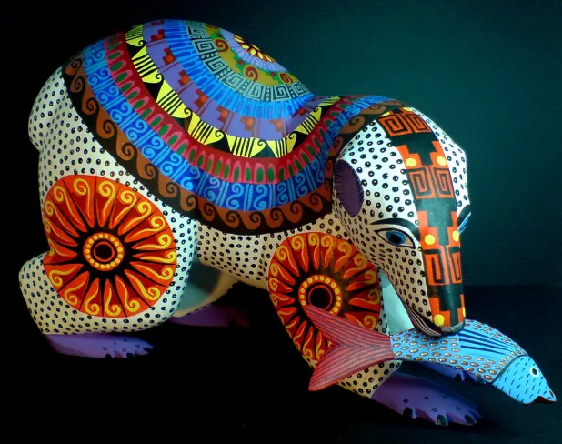 San Martín Tilcajete. Es una comunidad que se dedica principalmente a elaborar los famosos alebrijes; seres fantásticos tallados en madera o cartón, conformados por la unión de características fisonómicas de distintos animales, pintados con colores vibrantes y patrones intricados.